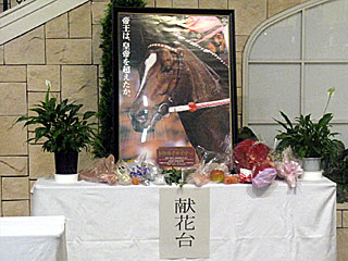 社台SSに繋養されていた トウカイテイオーが8/30に急性心不全のため亡くなりました。 その追悼行事として今日から9/29まで、 イーストホールに献花台および記帳台が設置されてます。 トウカイテイオーといえば、圧巻の 日本ダービーも良かったですが、なんといってもナチュラリズムを退けて父仔制覇を達成した ジャパンカップ。 岡部騎手のガッツポーズは今でも鮮明に覚えています。 |