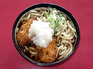 その後、メシ。 フジビュースタンド4Fの 「馬そば深大寺」へ。 「 おろしかつうどん大盛り」を注文。 今回でおろしかつも4食目。 相変わらずチキンカツがボリュームあってウマイ! |