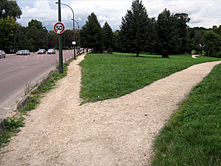 シュレーヌ橋を渡ったらすぐのところにある、この分岐を右へ。 |  |