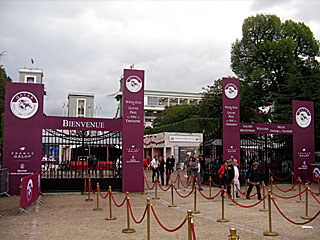 やがて、舗装された道路に出るので、そのまま道なりに右へ進むと、ロンシャン競馬場の入場門に到着です。 駅から徒歩15分ほど。 ルートマップ |  |