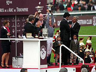 その後、本馬場にて表彰式。 勝った トレヴは、これで5戦5勝。 ディアヌ賞、ヴェルメイユ賞に続き、G1は3勝目。 父はモティヴェーター(Motivator)。 |