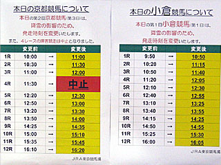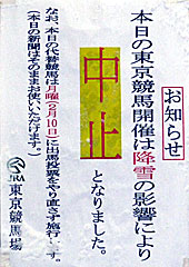 今日の東京は、20年に1度ともいわれる 大雪に見舞われ、東京競馬は開催中止となりました。 明後日の 2/10(月)に代替開催が行われます。 また、京都競馬と小倉競馬は行われるため、東京競馬場もパークウインズとして営業しましたが、京都と小倉も雪の影響があり、障害競走が中止されたうえ、発走時刻を遅らせての開催となりました。 |  |  |