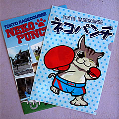 また、同じく ターフィーショップにて、 ネコパンチのクリアファイルが今日から発売されています。 2枚組で、1セット500円。 東京競馬場で500セットの限定発売なので、購入はお早めに。 |