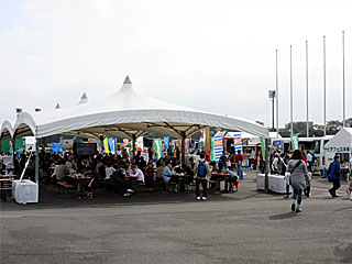 内馬場のビアフェス会場では、昨日に引き続き「 極ウマB級グルメバトル」を開催中。 昨日はあいにくの雨模様でしたが、今日は天気も回復し、GⅠ開催日というのもあり、多くのお客さんで賑わっていました。 |