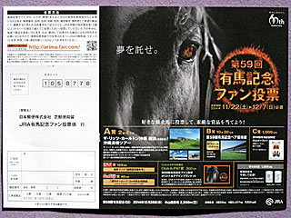 ちなみに今週から 12/28に行われる 有馬記念ファン投票の受付が始まりました。 受付期間は12/7までですので、投票はお早めに。 |