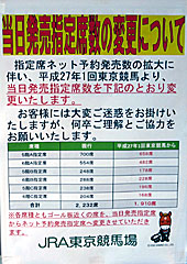 本日分から 指定席の予約発売、当日発売の配分が変更になりました。 A指定席は114席、B指定席は130席、C指定席は78席が、それぞれ当日発売からJRAカードによる予約発売に変更されています。 |