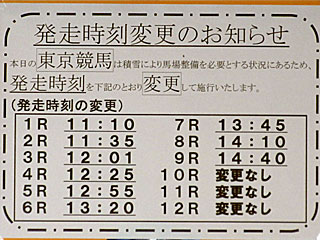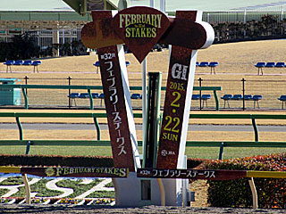 昨日、関東地方は今シーズン初の積雪となりましたが、今日の東京開催は除雪のため1Rの発走が1時間遅れとなりましたが、なんとか無事に初日開催を迎えることができました。 ダートのゴール板は、既にフェブラリーS仕様になっています。 |  |  |