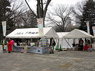 4/1~6/30の3ヶ月間、JRグループが行う「 福島デスティネーションキャンペーン」( 福島DC)が行われることから、そのPR用のブースが正門前広場に設置され、各種パンフレットの配布や、お土産品の販売なども行われていました。 福島には競馬場もありますし、この春はみなさん是非、福島へ。 |