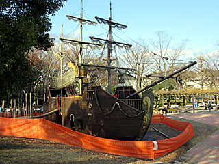 2週間ぶりの 東京競馬場。 JC後、初めて訪れたため、場内を少々パトロール。 まずは 日吉が丘。 事前に案内があった通り、 海賊船ダービー号が塗装作業のため閉鎖されていました。 |
