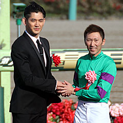 その後の表彰式。 プレゼンターは、今年のJRAナビゲーターを務める 瑛太さん。 去年のダービー以来かな? そして表彰式の最中、審議の結果がアナウンスされ、第4位に入線した リオンディーズが、最後の直線で外によれて、 エアスピネルと サトノダイヤモンドの進路を妨害。 リオンディーズと エアスピネルの着差がハナ差だったことから、この影響がなければ エアスピネルは リオンディーズに先着したであろうとの判断で、 リオンディーズは5着に降着。 M.デムーロは 昨年に続き、またしても実効4日間の騎乗停止処分に。 |