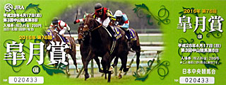 レーシングプログラムと 皐月賞記念入場券。 デザインはともに 昨年の優勝馬 ドゥラメンテ。 |  |  |