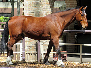 今日の ホースリンクは、馬車運行の担当馬 アラートデザイアと、ミニチュアホースの「 くるみ」が展示されていました。 |  |  |