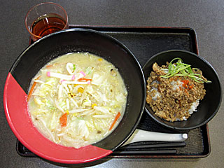 その後、フジビュースタンド2Fの ファストフードプラザにある 「らーめん西海」でメシ。 新メニュー「 西海ちゃんぽん」と「 まかない丼」のセットを注文。 チャンポンはさすが西海!と言いたいところだが、おいしいにはおいしいが、個人的には みまつの方が好きだなぁ。 まかない丼はいわゆるそぼろ丼。まずまず! |