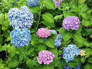 梅雨真っ只中で、 日本庭園や ローズガーデンではアジサイが見頃を迎えています。 しかし、 ローズガーデンは手入れが行き届いていないのか、アジサイは数を減らし、いたるところドクダミの白い花だらけなのが残念… |