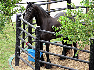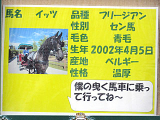 ふれあいパドックを訪れてみると、そこには イッツの姿が! イッツは以前、 東京競馬場で馬車を曳いていたけど、函館競馬場で再会できるとは思ってもみなかった! |  |  |