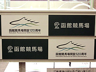 今年、函館競馬場は開設120周年ということで、場内にはそれを記念したロゴが数多く掲げられていました。 |  |  |