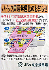 既報通り、今日から新しい喫煙所の利用が開始され、パドック周辺の屋外が禁煙化されました。 全面禁煙になったため、禁煙エリアとの境界線として引かれていたオレンジの線も消されています。 |