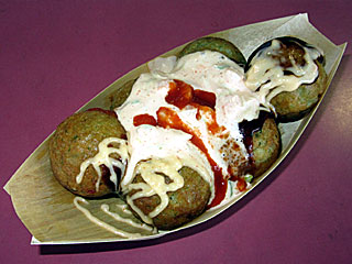 東京競馬場グルメ:ピリ辛エビマヨたこ焼〔築地銀だこ〕 |