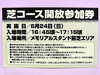 3回東京最終日といえば、毎年恒例の 芝コース開放イベント! 開門から先着3000人に参加券が配布されました。 しかし、 2010年以降、参加券と一緒に ダートの砂採取用のミニボトルも配布されていましたが、今年からなくなったようです… |