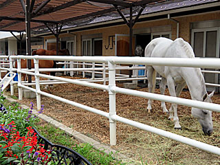 今日の 乗馬の展示コーナー。 先週と同じく タールタン、 ヒメ、 マイネルホウオウの3頭が展示されていました。 |