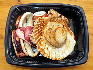 「つぼ抜きいか焼き」600円と「ほたて貝バター焼き」600円を購入。