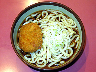東京競馬場グルメ:冷やしコロッケうどん〔馬そば深大寺〕 |