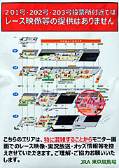 西門に近い ウエストホール周辺の混雑緩和のため、同エリア付近でモニターによるレース映像等の提供が中止とのことです。 |  |  |