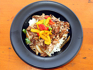 せっかくなのでグルメフェス再開を祝して朝メシ! 春開催では牛タン店だった「 MEDITRINA」がジンギスカンに鞍替えしていたので、そこで「 ジンギスカン丼」1000円。 恐らく成吉思汗たれを使った焼肉丼という感じだけど、カラーピーマンがトッピングされてちょっとオシャレな感じに。ウマイ! |  |  |