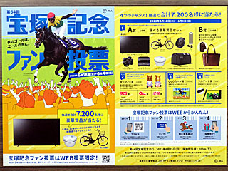 ちなみに今週5/18(木)から 宝塚記念ファン投票が始まりました。 今年も受付はインターネットのみで、期限は6/4までとなっています。 |