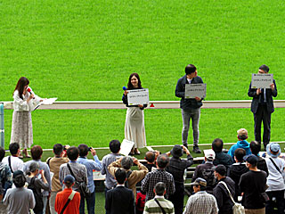 昼休み、 ゴール前特設ステージにて「 スポーツ報知主催オークス予想検討会」が行われました。 チラ見した程度でしたが、結局みんな本命は リバティアイランド。 まぁそうなるのは仕方ないけど… |