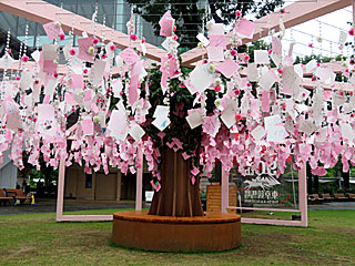 4/22から ローズガーデンに設置されている「 東京競馬場開設90周年記念ガーデン」も最終週を迎えました。 モニュメントに短冊のようなメッセージを飾れるのですが、最終的にはこれだけ賑やかになっていました! |  |  |