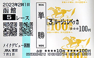 また、一部の発売窓口で「 競馬法100周年記念投票券」も発売されました。 デザインは 安田記念週と同じものです。 |