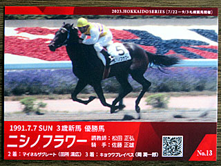 今度はイベント本部にて、開催日毎にデザインが変わる「 メモリアルレースカード」を入手。 デザインは ニシノフラワーでした。 |