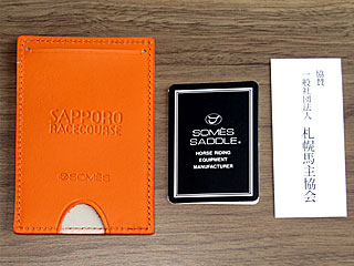 さらに「 競馬場イベント参加アプリ」で「 第1回札幌競馬抽選会」にチャレンジしたところ、見事に当選! 抽選会場へ行き、さらにくじを引くと、札幌馬主協会賞「 ソメスサドルパスケース」が当たった! |