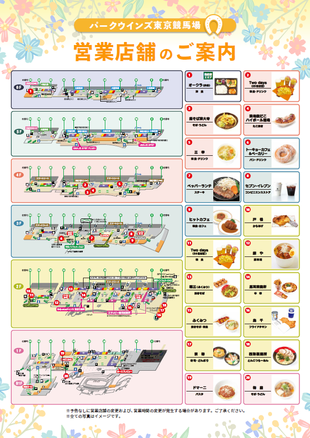 | 東京競馬場グルメインフォメーション| お店: | 馬そば深大寺 | | 場所: | フジビュースタンド4F・23番柱付近 | | 詳細: | | | 注文: | 冷やしかき揚げそば | | 値段: | 570円 |