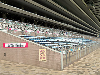 その後、 パークウインズ東京競馬場へ。 フジビュースタンドスマートシートの状況ですが、2F席以上は6席/列→4席/列になったことで座席番号が変わることとなり、各座席とも新しい座席番号シールに貼り換えられていました。 ただし、1F席は6席/列のまま変わらないため、縦方向の座席番号が揃わなくなっています。 1F席と2,3,4F席の価格差はどれくらいになるのか気になるところ… |
