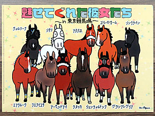 また、同じく 競馬場イベント参加アプリで、 昨日と同じく先着2500人に「 みんなで彩る馬×アート展クリアファイルプレゼント」の参加券も配布されていたので入手。 すると、 昨日とは違って おがわじゅりさんのデザインだった! 何種類かあるのをランダムで配布している? |