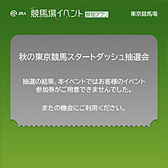 東京競馬秋開催2日目。 今日はまず 競馬場イベント参加アプリで「 秋の東京競馬スタートダッシュ抽選会」にチャレンジ。 しかし結果はハズレ… |