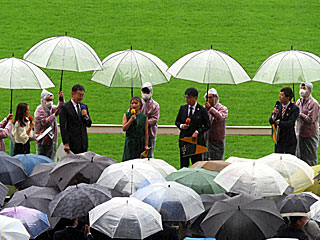 昼休み、ゴール前特設ステージにて「 日曜レース展望KEIBAコンシェルジュ in 東京競馬場」というトークイベントが開催されていました。 出演は 守永真彩さん、 小木茂光さん、 井上咲楽さん、 津田照之さん、 辻三蔵さん。 雨のなか大変そうだ… |