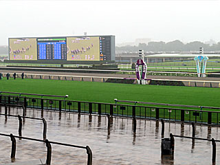 今日の 東京競馬場は朝から土砂降り。 昨日までは半袖でも過ごせるような陽気でしたが、今日は一転、最高気温も16℃までしか上がらず、肌寒い1日となりました。 |