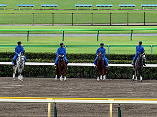 本日の 誘導馬。 メインレースを担当したのは シークレットパス、 ショウナンライズ、 マイネルラクリマ、 サトノソルタスでした。 |