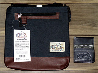 せっかくなので「ジャパンカップ薄マチショルダーバッグ」3200円と「ジャパンカップ革財布」3000円を購入。