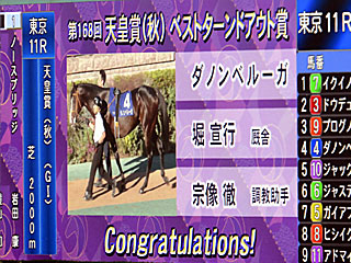 そして天皇賞の返し馬が終わると「 ベストターンドアウト賞」の発表。 受賞したのは 堀宣行厩舎の ダノンベルーガでした。 |