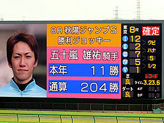 東京8Rは 秋陽ジャンプステークス。障害芝3110m。 勝ったのは4番人気 ロードトゥフェイム。レコード勝ち! マツリダゴッホ産駒の牡5で、鞍上は 五十嵐雄祐騎手。 |  |  |