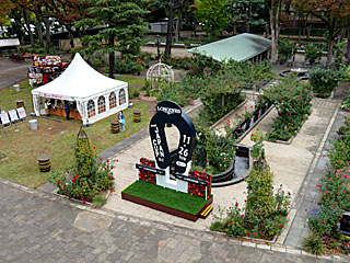 今日から ローズガーデンは「 ジャパンカップガーデン」に模様替え。 実物大のゴール板が飾られ、記念撮影もできるフォトスポットとなりました。 また、 例年通り「 ワインフェスティバル」も併設されています。 |