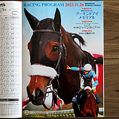 今年、 アーモンドアイが顕彰馬に 選出されたことから、同馬の 現役最終戦となったジャパンカップ当日の今日はアーモンドアイメモリアルデーとなりました。 それに合わせ「 顕彰馬アーモンドアイ特別版レーシングプログラム」も配布されました。 |