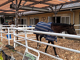 開催2日目の 乗馬の展示コーナー。 今日は キュリオ、 ボウダンサー、 バルロヴェントの3頭が展示されていました。 |