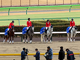 また、メインレースの 誘導馬。 クリプトグラム、 サトノソルタス、 シークレットパス、 ミライヘノツバサの4頭が務めていました。 |