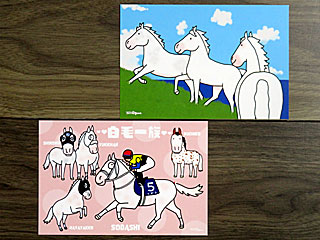 今日もまずは「 競馬場イベント参加アプリ」で「白毛図鑑純白のサラブレッドオリジナルポストカードプレゼント」にチャレンジ。 すると、2日連続で当選! 昨日と同じデザインですが2セット目。 |