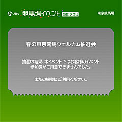 まずは「 競馬場イベント参加アプリ」で「 春の東京競馬ウェルカム抽選会」にチャレンジしたが残念ながらハズレ… |
